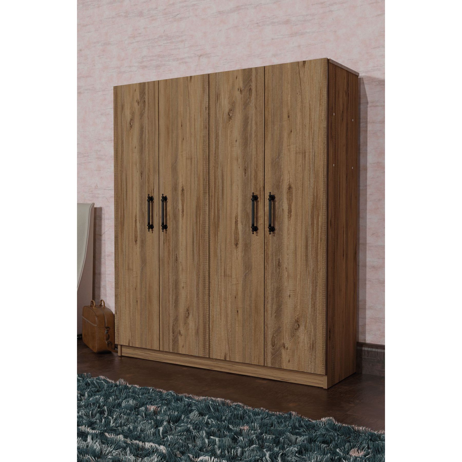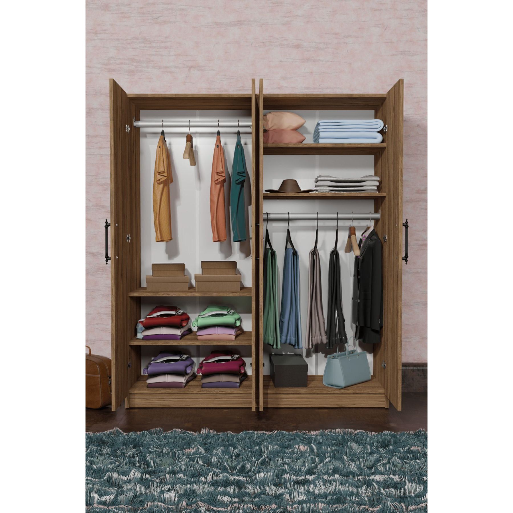 ARENA Modern Minimalist 4-Door Wardrobe 2 Hangers 6 Shelves Eco-Friendly Durable Design for Bedroom Hospital Clothes Storage